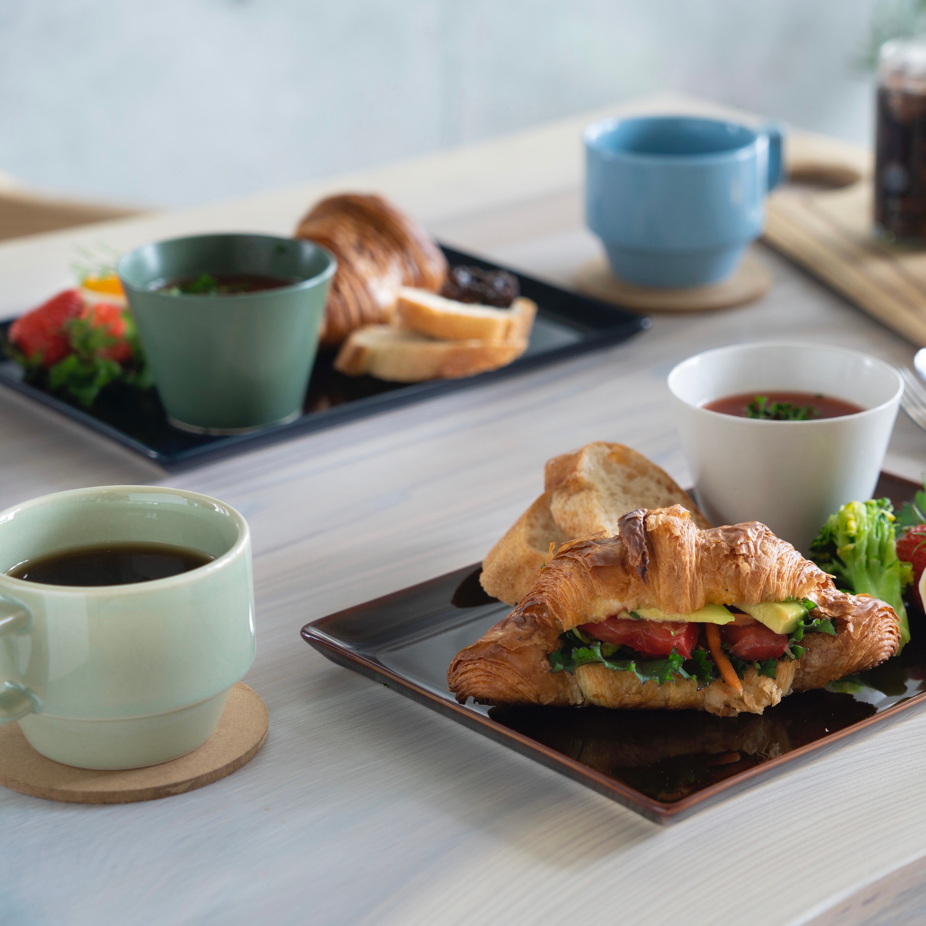 市販のドリップタイプのインスタントコーヒーや粉末タイプのカップスープに調度良い180ccの容量です。スタッキングできるので、収納もしやすいです。